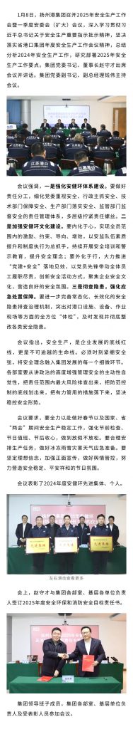 揚(yáng)州港集團(tuán)召開(kāi)2025年安全生產(chǎn)工作會(huì)暨一季度安委會(huì)(擴(kuò)大)會(huì)議