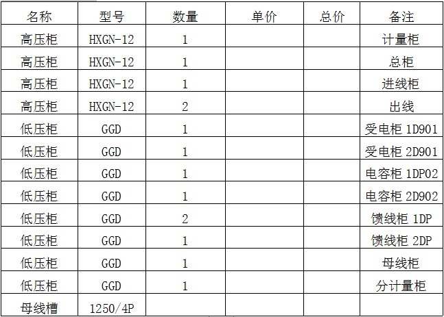 我公司因建設(shè)電房需要高壓柜、低壓柜等電房配套設(shè)備,現(xiàn)向社會(huì)邀請(qǐng)招標(biāo),規(guī)格如下: